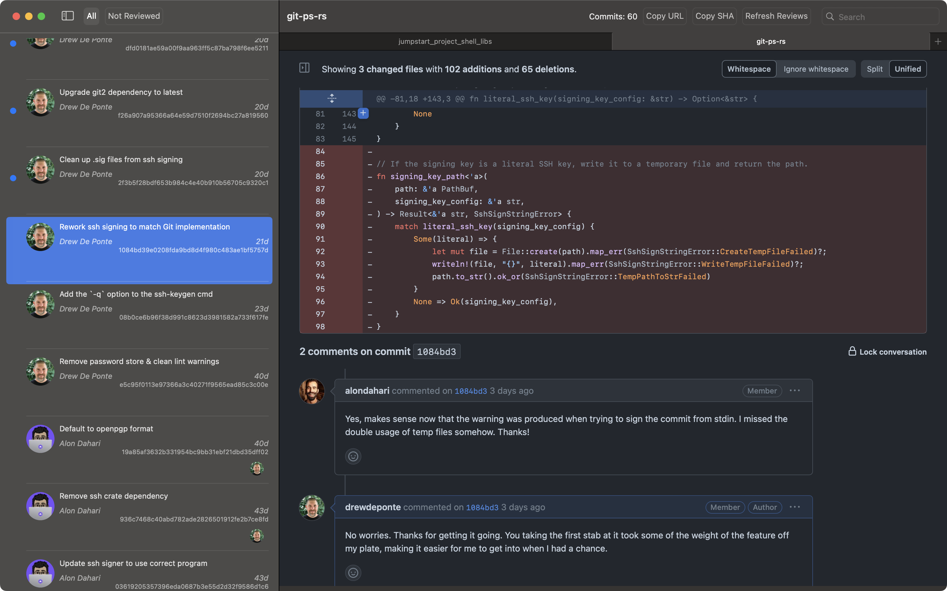 NotaCode is a macOS application that facilitates post-commit reviews in combination with GitHub. Interestingly it stores the review data within the Git Object store so that it is synchronized along with all the other Git data.