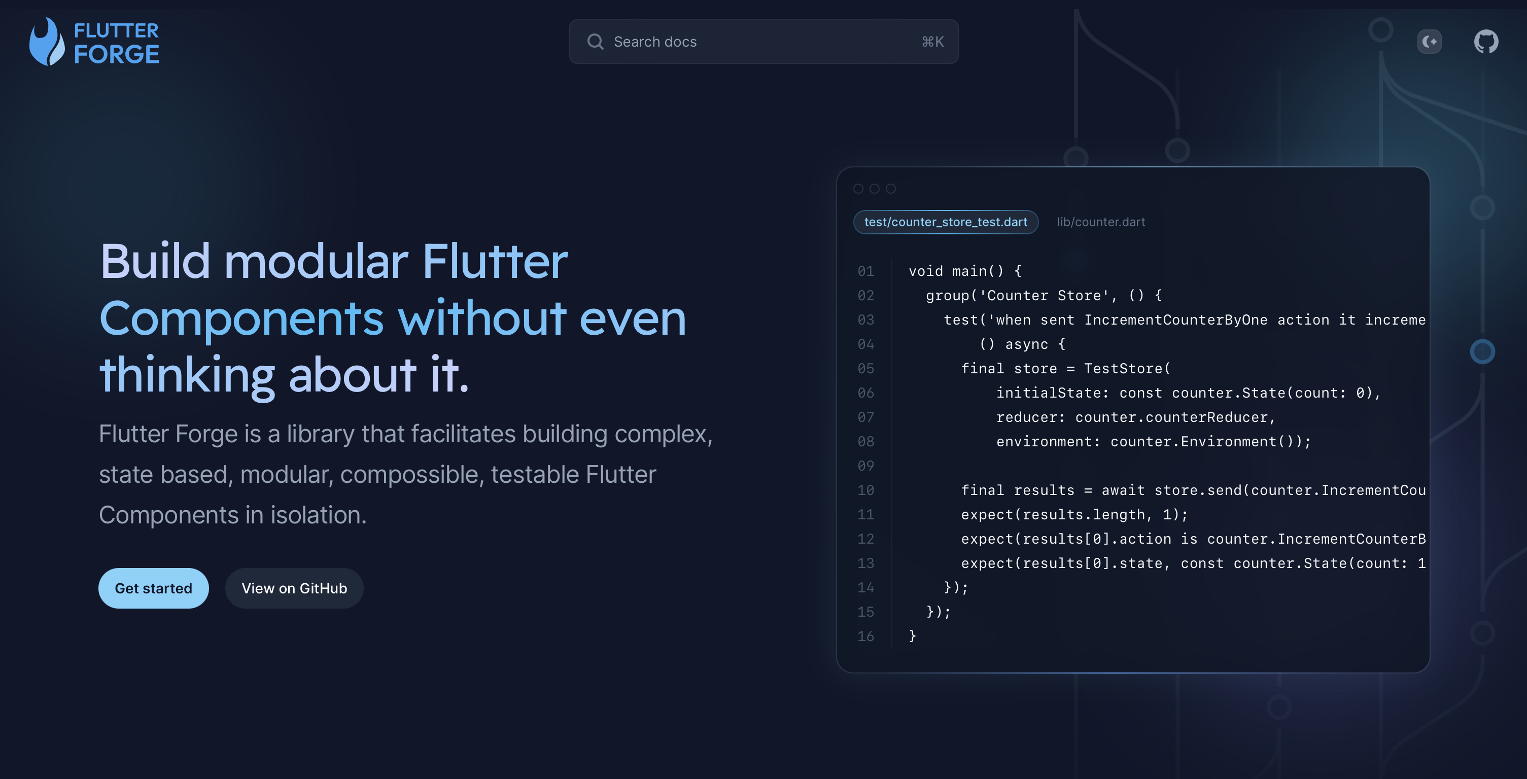 Flutter Forge is a library that facilitates building complex, state based, modular, composable, testable Flutter Components in isolation. I created this library & all the documentation to help the developers in Uptech Studio more easily create components that would be testable & composable, as these were areas we were seeing pain points in the various projects.