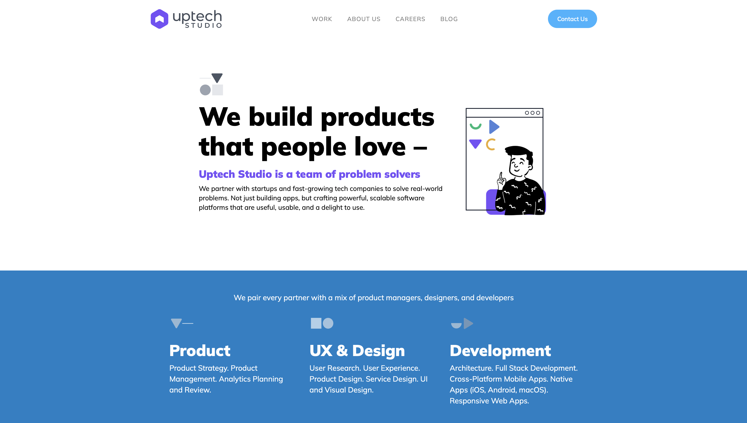 Uptech Studio is a Product, Design, and Development consultancy that I Co-founded and operated for the past 8 years. It has three lines of business. Consulting, investing, and selling their own software solutions.